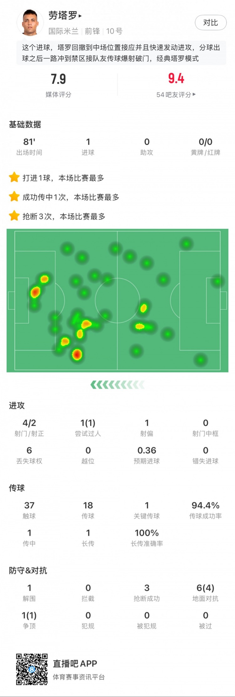 除特別注明外,本站所有內容均為24直播網(wǎng)整理排版,轉載請注明出處:勞塔羅本場(chǎng)數據:1粒進(jìn)球,4次射門(mén)2次射正,3次搶斷